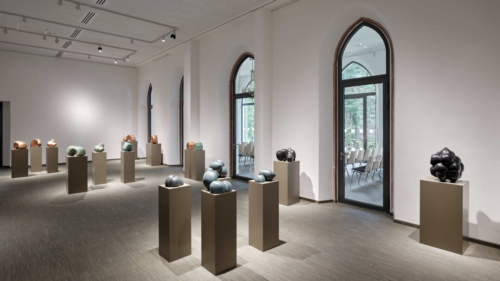 Die Wiedereröffnung startet mit der Ausstellung „Transformation. Skulpturen von Rainer Hunold“, die bis zum 29. Mai 2026 läuft. Hunold, vielen als Schauspieler aus Film und Fernsehen bekannt, hat sich ganz der Bildhauerei verschrieben. Zwei seiner Werke aus der städtischen Sammlung werden in den Kontext seines Gesamtwerks gestellt. „Transformation zeigt nicht nur die künstlerische Entwicklung Rainer Hunolds, sondern ist zugleich eine Metapher für den Wandel des Hauses selbst.“, so Kulturamtsleiterin Dr. Bettina Gentzcke.