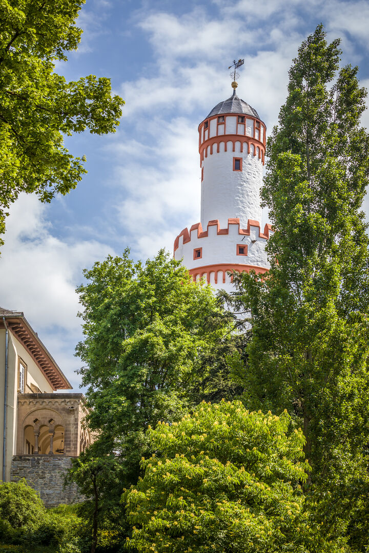 Fragt man die Bad Homburgerinnen und Bad Homburger nach dem Weg zum Weißen Turm, wandern die Blicke fast automatisch in die richtige Richtung. Kein Wunder – schließlich ist der Weiße Turm das Wahrzeichen der Kurstadt. Schon von weitem ist der markante Turm des Schlosses zu erkennen, dessen heller Anstrich ihm seinen Namen verleiht. Obwohl er nicht der einzige Turm der Stadt ist, überragt er alle anderen. Ursprünglich im 14. Jahrhundert als freistehender Bergfried errichtet, steht er heute im Schlosshof und dient nicht nur als Wahrzeichen Bad Homburgs, sondern auch als beliebter Aussichtspunkt.